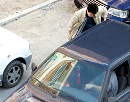 15日下午3时34分,大兴二中考点门口,一名考生在开考大约一个小时后走出考场,准备上一辆蓝色轿车,该生被指为“枪手”。