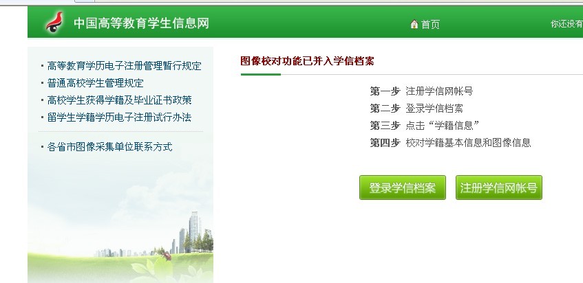 点击网页右侧的“学历电子注册图像校对”(如下图第三栏);